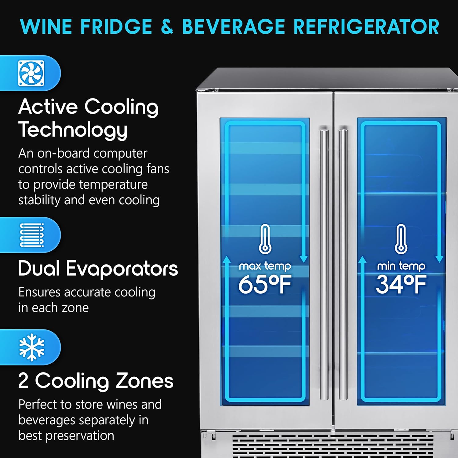 زیفیر PRWB24C32BG یو څو اړخیز دوه ګونی زون کولر دی چې د شرابو بوتلونه او د څښاک کینونه د دوی په غوره تودوخې کې ذخیره کولو لپاره ډیزاین شوي. دا د فرانسوي شیشې دروازې ډیزاین، فعال یخولو ټیکنالوژي، او د انعطاف وړ ذخیره کولو لپاره د تنظیم وړ الماری لري.