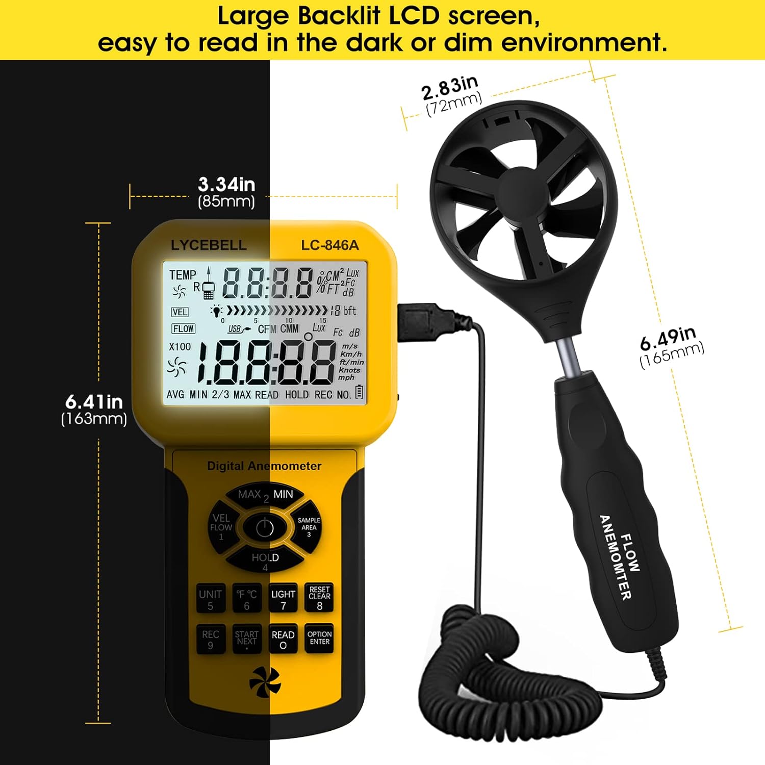 Thank you for choosing the LYCEBELL LC-846A HVAC Anemometer CFM Meter. This device is designed for accurate measurement of wind speed, air flow, and air temperature. It is an essential tool for HVAC professionals, outdoor enthusiasts, and anyone requiring precise air movement data. This manual provides detailed instructions for the proper setup, operation, and maintenance of your anemometer to ensure optimal performance and longevity.