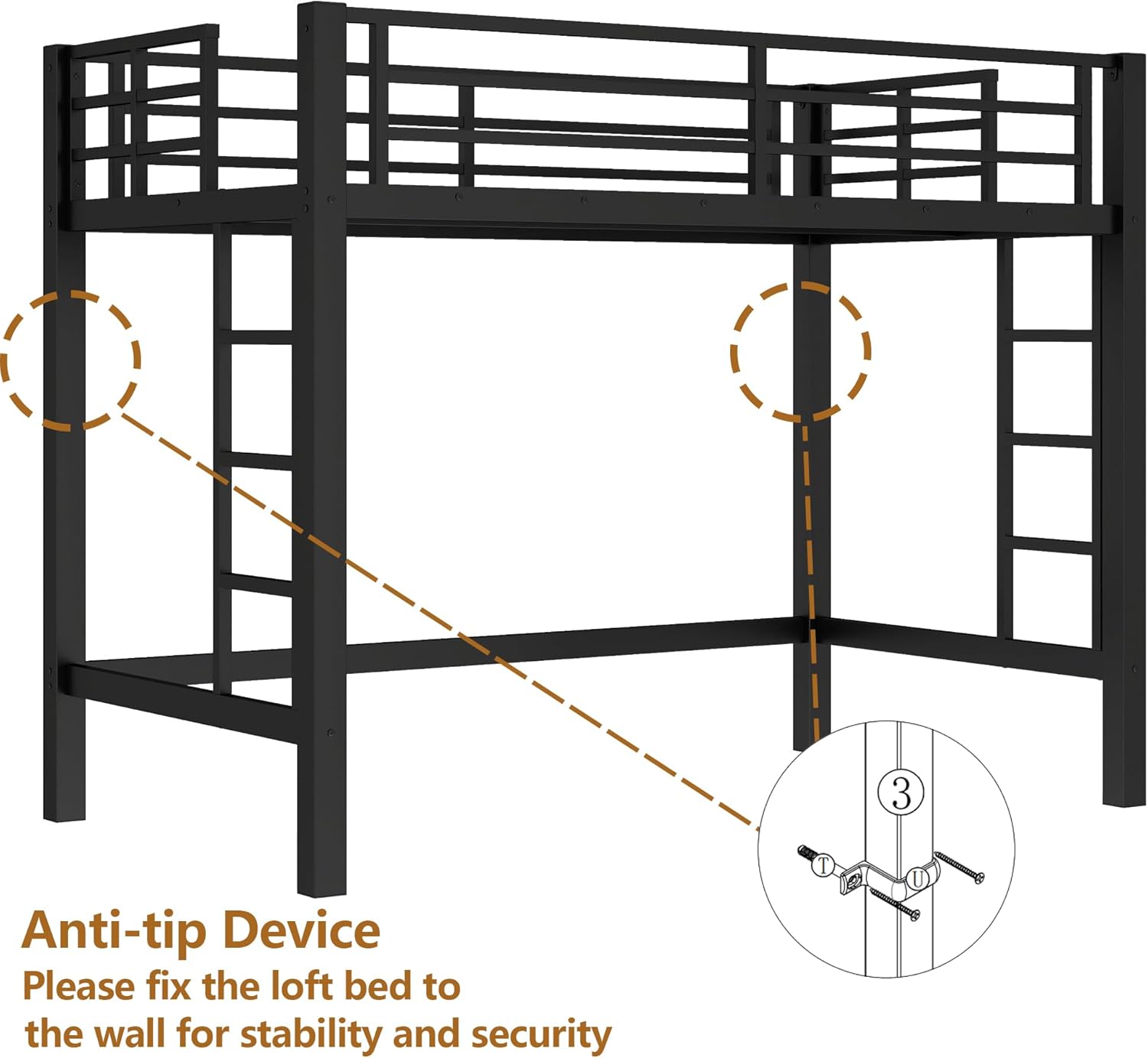 - All four sides of the loft bed frame are equipped with protective guardrails to prevent accidental falls. Ensure they are properly installed and secured.
